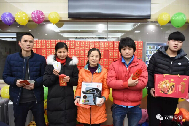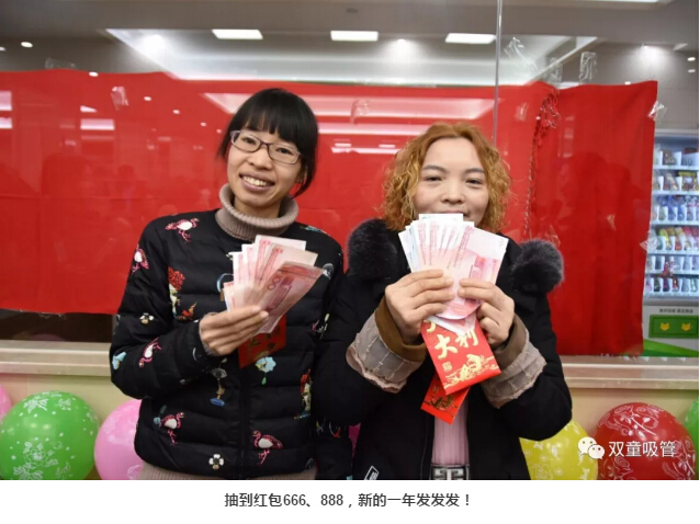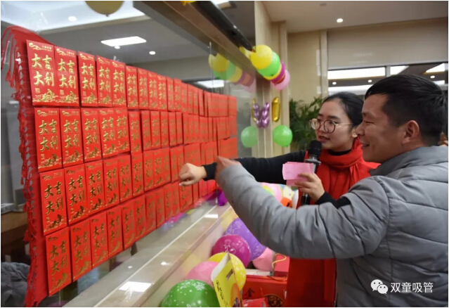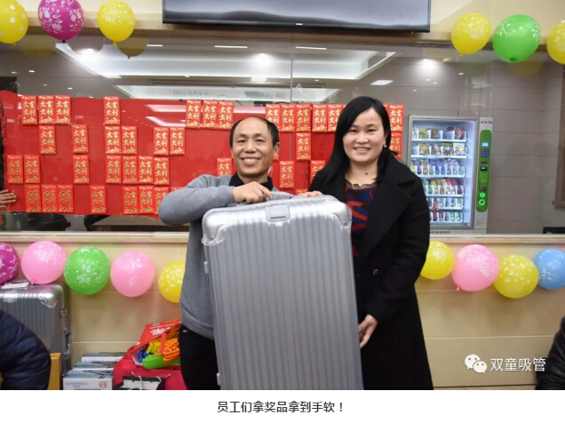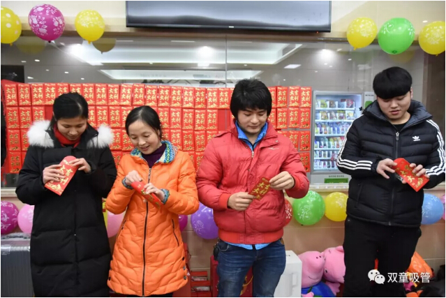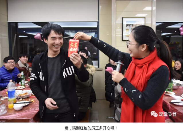 如此熱鬧的年會(huì )抽獎當然也不能少!一個(gè)接著(zhù)一個(gè)紅包輪番抽出,話(huà)費卡、電影券、88、188、288、666、888各種面值的紅包一起被抽出,大家拿紅包拿到手軟!瞧,抽到666和888的同事們笑的都快合不攏嘴啦!在一片歡聲笑語(yǔ)中,“雙童吸管”春節聯(lián)歡晚會(huì )也圓滿(mǎn)結束!