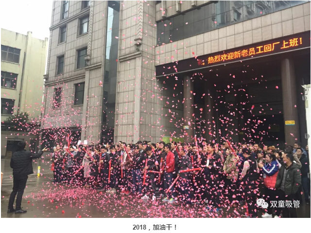看,我們全體新老員工匯集在生產(chǎn)廠(chǎng)房的門(mén)口,用環(huán)保的禮炮,開(kāi)始了新一年的努力奮斗!