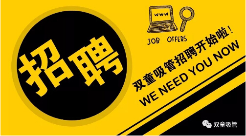 重磅好消息!“雙童”2018年招聘開(kāi)始啦! 崗位多多哦,有操作工、包裝工、機修工、車(chē)間班組長(cháng)、貨運駕駛員等等,除此之外,“雙童”文宣科(沒(méi)錯,就是吸管妞和吸管君所在的部門(mén))也要擴容招聘啦!