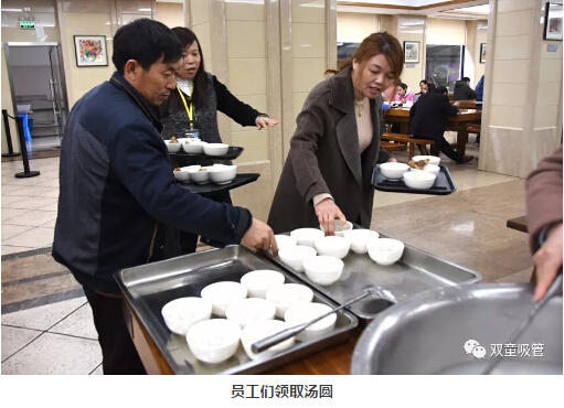元宵節當天,“雙童”員工餐廳特地為員工們準備了美味可口的湯圓。大家一起吃著(zhù)湯圓,享受元宵佳節的快樂(lè )!