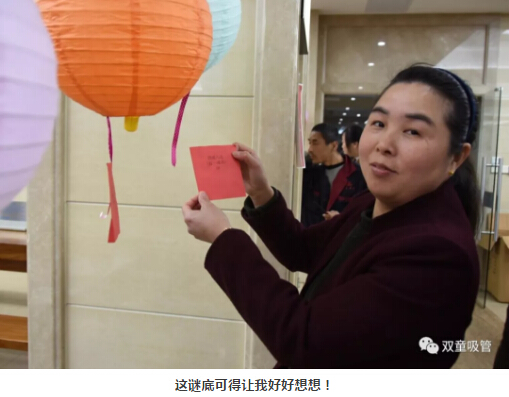 猜燈謎不僅有悠久的歷史,也有著(zhù)深厚的文化底蘊,燈謎藝術(shù)融知識性和趣味性于一體,倍受人們喜愛(ài)!餐廳內一排排的燈籠烘托出了濃郁的節日氛圍,一條條彩紙制成的謎語(yǔ)給節日點(diǎn)綴的五彩繽紛。我們的燈謎競猜大會(huì )也在濃厚的節日氛圍中拉開(kāi)帷幕……