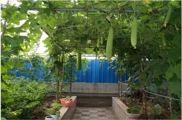 “雙童”的屋頂菜園有700多平方米,種著(zhù)二三十種蔬菜!南瓜、絲瓜、苦瓜、冬瓜、辣椒…… 菜園子里的蔬菜真是應有盡有,自家種的菜,在眼皮子底下發(fā)芽成長(cháng),開(kāi)花結果,安全放心!
