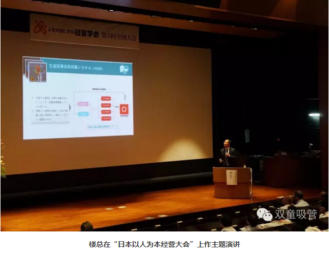 隨后,會(huì )議正式進(jìn)入分享環(huán)節?!半p童”樓仲平圍繞著(zhù)“人本經(jīng)營(yíng)”在“雙童”的形成索源、實(shí)踐、持續改善方面進(jìn)行分享。雖然語(yǔ)言翻譯需要借助翻譯的轉達,但大家依舊沒(méi)有受到影響,日本人的認真態(tài)度實(shí)在是值得我們國人學(xué)習!