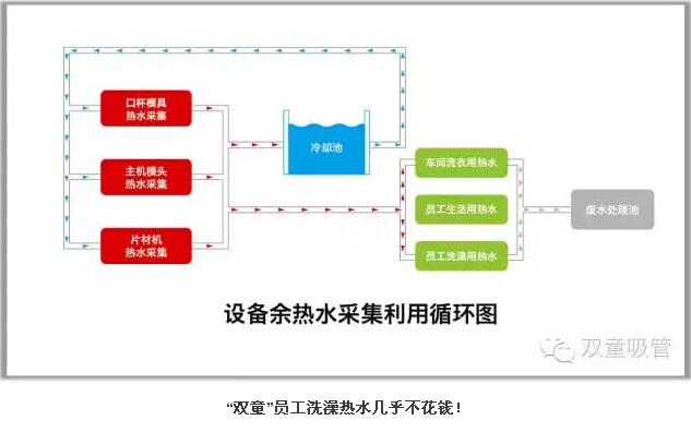 “雙童”很摳,摳在連“余熱能源”都要采集!我們在建廠(chǎng)之初,通過(guò)對車(chē)間模具冷卻用水的收集,把熱水供應到寢室樓給員工洗澡洗衣生活之用。同時(shí)我們也把生產(chǎn)設備的余熱和廢氣進(jìn)行采集并回收,經(jīng)過(guò)凈化處理后再供應給車(chē)間進(jìn)行供熱,從而高效利用了余熱能源。