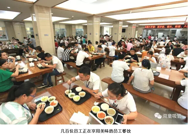 來(lái)到員工餐廳時(shí),大家就被餐廳內精致的硬件吸引,表示沒(méi)有想到員工餐廳也會(huì )有如此好的環(huán)境!吸管妞也向同學(xué)們介紹道:“‘雙童’是倡導‘家文化’的企業(yè),不僅為員工提供免費餐飲,還提供免費住宿。在餐廳,員工每天都能享用出優(yōu)質(zhì)可口的餐飲,我們也鼓勵員工家屬在餐廳就餐并享受半價(jià)優(yōu)惠!”在聽(tīng)了吸管妞的介紹之后,帶隊老師幽默地表示“雙童”包吃包住,真是實(shí)現了“共產(chǎn)主義”!