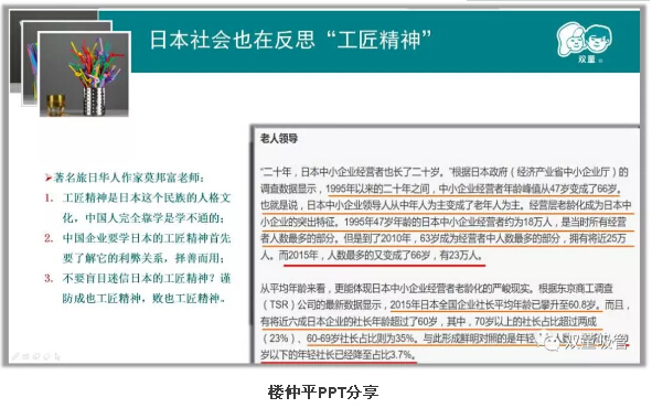 帶著(zhù)上述疑問(wèn),吸管妞今天就通過(guò)“雙童”樓仲平的一段講課小視頻,和他長(cháng)期接觸日本中小企業(yè)的感受,引導大家認知新時(shí)代背景下的“新工匠精神”!