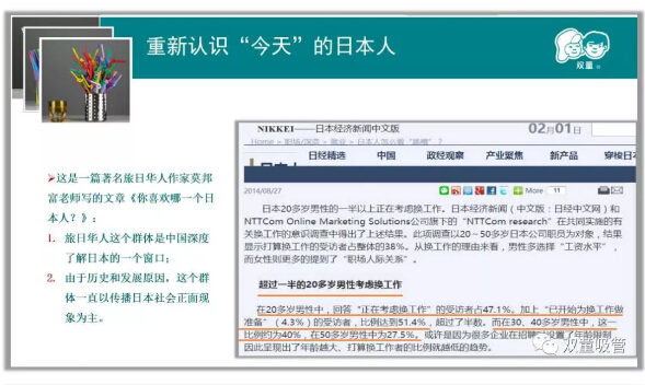 實(shí)際上,無(wú)論是從樓仲平二十多年來(lái)對日本社會(huì )的觀(guān)察,還是社會(huì )媒體對日本企業(yè)界的調查報道,都能發(fā)現日本在企業(yè)文化和就業(yè)認知上存在的巨大轉變。有亞洲中小企業(yè)研究第一人之稱(chēng)的法政大學(xué)教授坂本光司先生一再提醒:過(guò)度專(zhuān)注堅持只做一個(gè)產(chǎn)品的企業(yè)會(huì )非常危險,至少要做3-5個(gè)產(chǎn)品。創(chuàng )新能力是目前日本中小企業(yè)的優(yōu)勢,但勢頭已開(kāi)始衰竭!受互聯(lián)網(wǎng)發(fā)展影響,未來(lái)幾年日本大量百年企業(yè)將經(jīng)受前所未有沖擊! 現如今的日本中小企業(yè),正面臨著(zhù)經(jīng)營(yíng)者老齡化、二代傳承危機、創(chuàng )新力衰竭等一系列現實(shí)問(wèn)題。