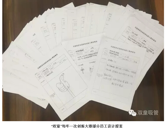 除此之外,“雙童”動(dòng)員內部全體員工進(jìn)行思維創(chuàng )新,在公司舉行吸管創(chuàng )新大賽,收集到了不少優(yōu)秀的創(chuàng )新提案。另一方面,“雙童”也陸續與浙江師范大學(xué)、北京服裝大學(xué)、中國塑料工業(yè)研究所等機構建立長(cháng)期合作,從而逐漸形成了規范的研發(fā)性低成本創(chuàng )新之路!