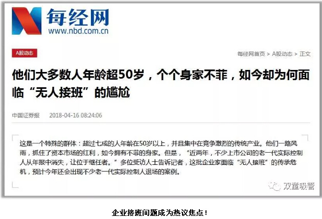 中國經(jīng)歷三十多年的改革開(kāi)放,誕生了一大批的民營(yíng)企業(yè)家,他們所創(chuàng )辦的企業(yè),成為各行各業(yè)的翹楚。根據“新財富 500 富人榜”的數據顯示,我國50 歲以上民營(yíng)企業(yè)家占比為 67%,這意味著(zhù)近七成的中國家族企業(yè)需尋找接班人。這意味著(zhù)未來(lái)五到十年內,我國將有300萬(wàn)家民營(yíng)企業(yè)面臨接班換代的問(wèn)題。但是,二代能真正順利接班嗎?在接班后能否繼續傳承家業(yè)?這是最關(guān)鍵的問(wèn)題,或許又是最沉重的話(huà)題。