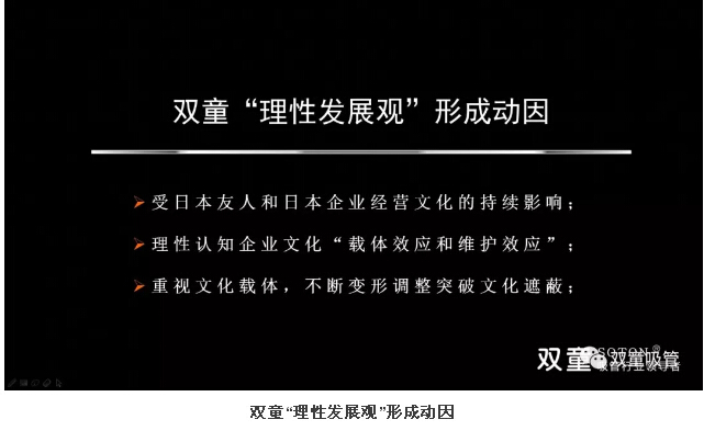 “雙童”之所以有“理性發(fā)展觀(guān)”,實(shí)際上是受日本企業(yè)經(jīng)營(yíng)文化的持續影響,理性認知企業(yè)文化“載體效應和維護效應”,重視文化載體,不斷變形調整突破文化遮蔽!