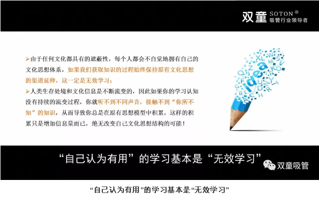 所以,由于任何文化都具有的遮蔽性,每個(gè)人都會(huì )不自覺(jué)地擁有自己的文化思想體系。作為創(chuàng )業(yè)者或管理者來(lái)講,我們也要不斷調整自己的思想狀態(tài)和文化結構。如果我們獲取知識的過(guò)程始終保持原有文化思想的渠道延伸,就會(huì )導致我們總是在原有思想模型中積累,這樣的積累只是增加信息量而已,絕無(wú)改變自己文化思想結構的可能!