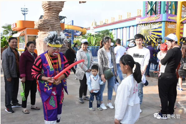 在園區內,還可以隨處看到馬戲團的表演哦!小丑們獻上各自的絕活,雜技、魔術(shù)、泡泡秀……各類(lèi)表演讓“雙童”人們連連叫好!