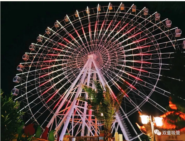 看完演出出來(lái),夜色已晚,在夜幕的襯托下,光彩動(dòng)人的燈光讓樂(lè )園更夢(mèng)幻!夜晚的摩天輪很美麗,一覽夜色斑斕,美不勝收!