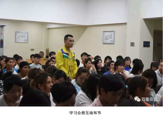 學(xué)習會(huì )一開(kāi)場(chǎng),毛講師就通過(guò)幾個(gè)互動(dòng)提問(wèn),讓員工們各抒己見(jiàn),分享了他們對于“衛生”的看法。有些新員工對“雙童”的車(chē)間衛生防護并不理解,認為吸管這樣的附屬產(chǎn)品在小作坊也能做,為何要如此麻煩呢?