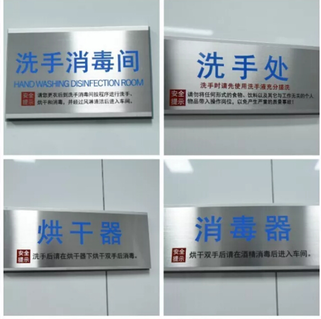 除此之外,功能區內還配置了高端的烘干器、消毒器、感應水龍頭以及酒精消毒器等硬件,并配置了許多精心定制的標示牌,提示著(zhù)員工規范使用!這樣的配備也為員工的衛生要求做了硬件的保障,確保員工工作環(huán)境的極致衛生!