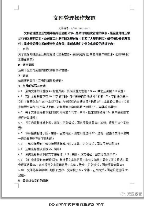 通過(guò)這份文件,我們統一了企業(yè)文件的編寫(xiě)要求,從而明確指導各部門(mén)在形成、修訂、補充和更新文件時(shí)的統一規范!換句話(huà)說(shuō),無(wú)論是“雙童”多少位科室員工寫(xiě)的文件,打開(kāi)一看都像是一個(gè)人寫(xiě)的文件!