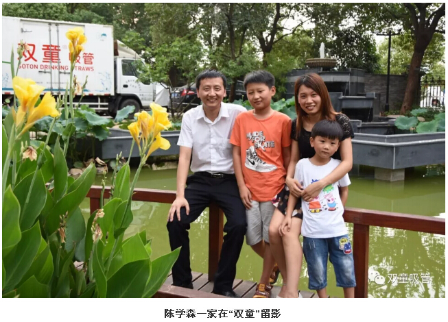 事業(yè)蒸蒸日上的同時(shí),陳學(xué)森也在“雙童”有一個(gè)幸福小家庭。2013年,陳學(xué)森把老婆張新宇也接來(lái)“雙童”上班,每逢暑假,他們的兩個(gè)兒子也會(huì )到“雙童”和父母團聚,一家人在一起其樂(lè )融融。2016,陳學(xué)森也購置了他心儀已久的車(chē)子,圓了他的一個(gè)夢(mèng)。