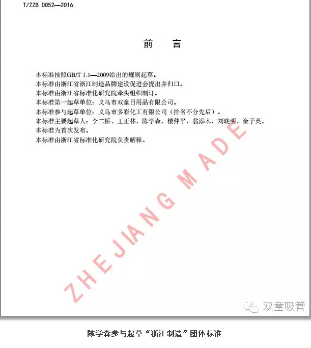 現在,陳學(xué)森主要負責客戶(hù)審廠(chǎng)、質(zhì)量檢驗、產(chǎn)品衛生防護、掌握產(chǎn)品動(dòng)態(tài),收集質(zhì)量信息等工作。2016年,他還參與了“浙江制造”團體標準《聚丙烯飲用吸管》的起草工作,為企業(yè)又拿到了一頂標準方面的桂冠!這也意味著(zhù)經(jīng)過(guò)這些年的努力,他終于從一個(gè)基層員工真正成長(cháng)為吸管行業(yè)的專(zhuān)家。
