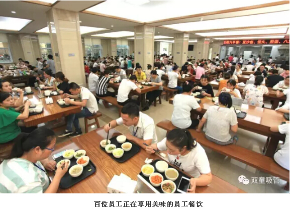 最重要的是員工們就餐不需要花費一分錢(qián),統!統!免!費!我們配置給員工的伙食成本每月不低于600元!除了給員工提供餐飲之外,“雙童”也鼓勵員工的家人一起在餐廳就餐,員工家屬在食堂就餐收取一半成本費用,盡量解決員工在工作之余不再忙于家務(wù)!