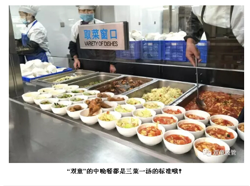 除了早餐之外,中餐和晚餐就更加豐盛啦,都是三菜一湯的標準。一葷兩素營(yíng)養搭配,每天都不一樣哦!除此之外,還有夜宵,員工們進(jìn)了“雙童”可得胖三斤呀!
