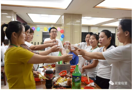 “雙童”6月生日會(huì )在員工餐廳舉行,