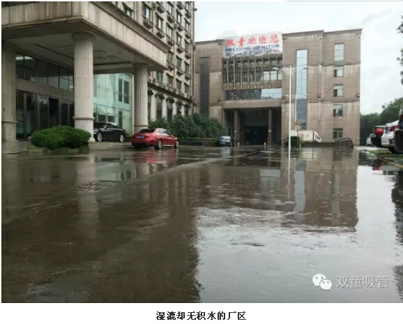 在“雙童”,雖然下雨使整個(gè)廠(chǎng)區的路面濕漉漉的,但得益于布滿(mǎn)廠(chǎng)區的“雨水收集孔”,所以并沒(méi)有“發(fā)大水”!來(lái)到“雙童”,您就別再“跳水坑”啦!