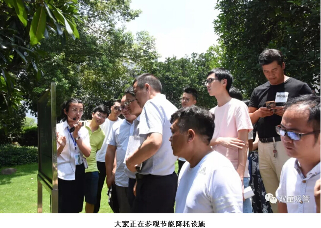 會(huì )議結束之后,設計方、施工方以及正在施工單位實(shí)習的應屆大學(xué)生們也一起參觀(guān)了“雙童”現在的廠(chǎng)區。在參觀(guān)了節能降耗設施、中國吸管博物館、車(chē)間功能區、員工餐廳、員工寢室、屋頂菜園等地后,大家紛紛感嘆:“雙童”15年前建設的工廠(chǎng)就用上了如此優(yōu)質(zhì)的硬件設施,還有如此超前的節能理念……真是制造業(yè)標桿!