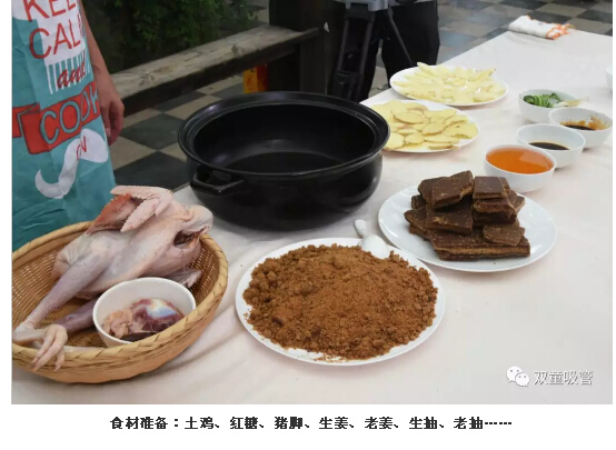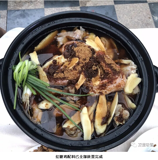 這道菜做起來(lái)可不簡(jiǎn)單哦!除了有雞、紅糖、豬腳等主料外,還需加入七種調料,經(jīng)過(guò)12道工序后,用土鍋柴火燒制,并用稻草灰蓋鍋密封才能烹飪出更好的味道。 經(jīng)過(guò)大半天的燒制,“義烏紅糖雞”大功告成,色香味俱全?。?/span>PS:嫩雞至少要燉1個(gè)小時(shí),老母雞至少要燉2—3個(gè)小時(shí))