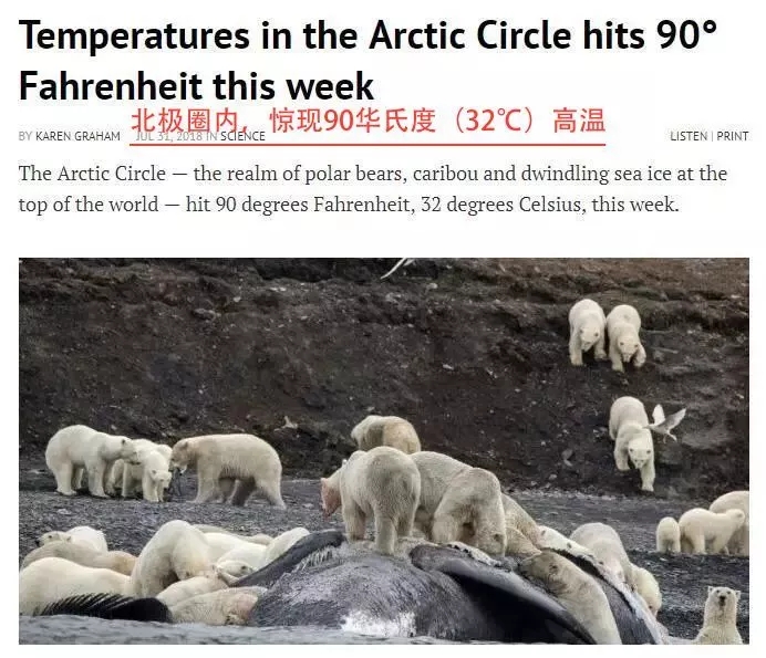 一則《北極圈罕見(jiàn)達到高溫32℃!北極熊瀕臨滅絕……》