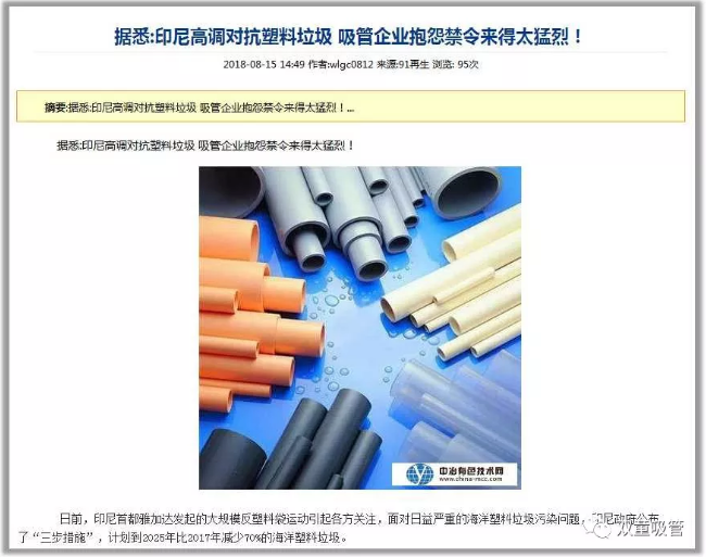 印度尼西亞的一家塑料吸管領(lǐng)頭企業(yè)面對印尼及全球各地的限塑活動(dòng),表示預料到其產(chǎn)品增長(cháng)會(huì )受到禁令的影響,但沒(méi)想到禁令來(lái)得如此迅捷。