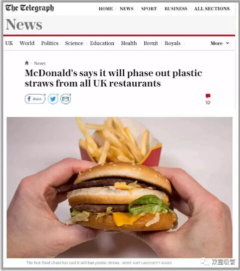 今年3月,麥當勞宣布不再在英國門(mén)店中使用塑料吸管。