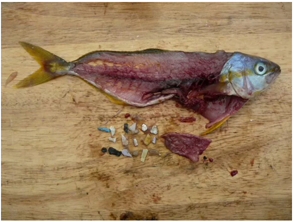 ▲在魚(yú)的體內,發(fā)現了許多塑料碎片,這種大小的碎片一般不會(huì )被人吃進(jìn)肚子