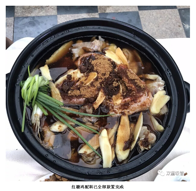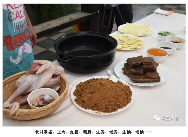 這道菜做起來(lái)可不簡(jiǎn)單哦!除了有雞、紅糖、豬腳等主料外,還需加入七種調料,經(jīng)過(guò)12道工序后,用土鍋柴火燒制,并用稻草灰蓋鍋密封才能烹飪出更好的味道。 經(jīng)過(guò)大半天的燒制,“義烏紅糖雞”大功告成,色香味俱全?。≒S:嫩雞至少要燉1個(gè)小時(shí),老母雞至少要燉2—3個(gè)小時(shí))
