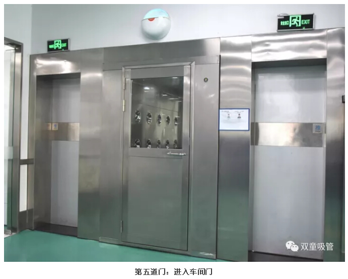 5.員工們風(fēng)淋后經(jīng)過(guò)第五道車(chē)間入口門(mén),進(jìn)入車(chē)間進(jìn)行生產(chǎn)工作。