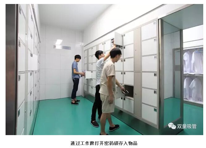 2、員工來(lái)到第一更衣區,將自己的私人衣物儲存在柜子中。