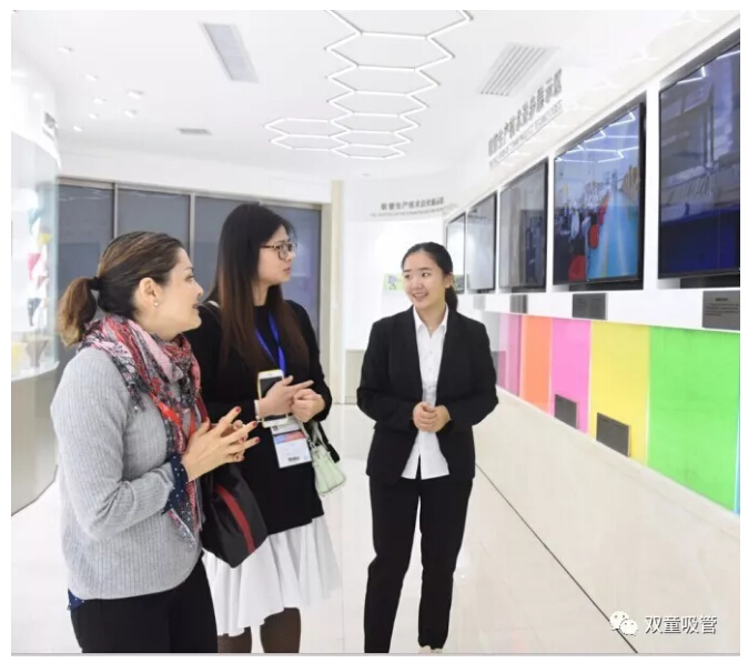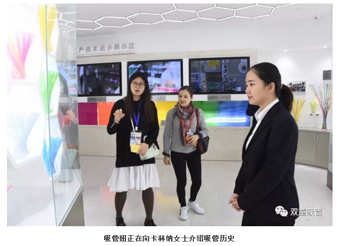 首先,卡林納女士等一行人來(lái)到了中國吸管博物館,吸管妞向卡林納女士詳細介紹了吸管產(chǎn)品的“前世今生”,并展示了博物館內各個(gè)時(shí)期及各種材質(zhì)的吸管,從最早4000多年前的就開(kāi)始使用的秸稈吸管到紙吸管、塑料吸管......卡林納女士認真聆聽(tīng),不時(shí)點(diǎn)頭表示認可。
