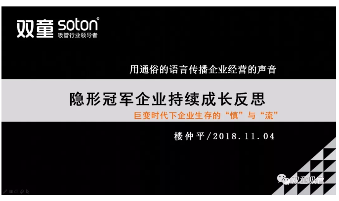大會(huì )現場(chǎng),樓仲平做了《隱形冠軍企業(yè)持續成長(cháng)反思——巨變時(shí)代下企業(yè)生存的“慎”與“流”》主題演講,圍繞企業(yè)生存的“慎”與“流”二字展開(kāi),講述了他對于中國企業(yè)持續成長(cháng)的反思和心得,下面就讓我們一起來(lái)看看吧!