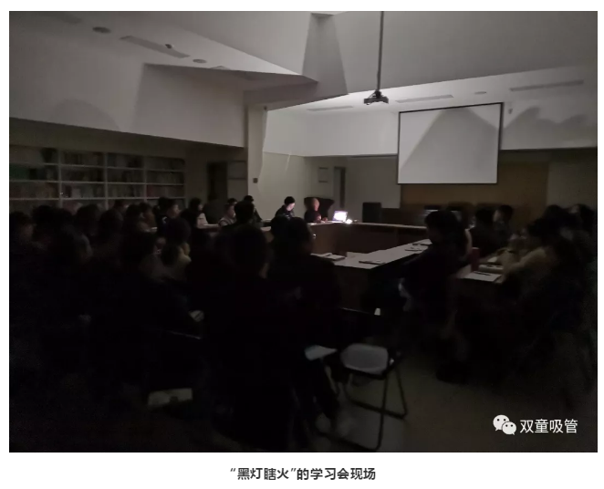 原來(lái),是在“雙童”學(xué)習會(huì )現場(chǎng),突然碰到了停電的情況。