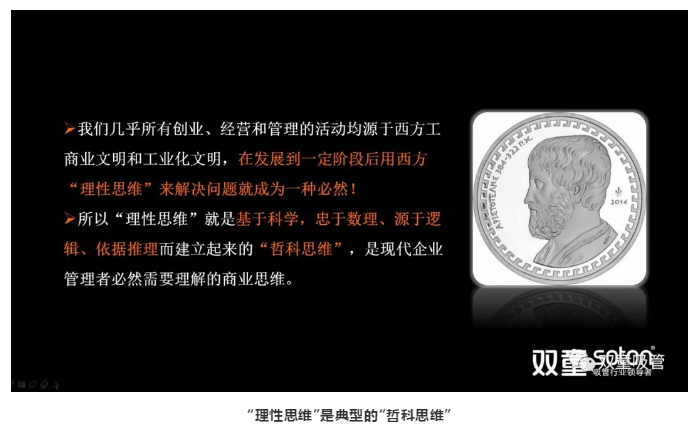 西方文明是一種生人文化和商業(yè)文化,“理性”是生人文化下產(chǎn)生的文化認知語(yǔ)境,是基于科學(xué),忠于數理、源于邏輯、依據推理而建立起來(lái)的“哲科思維”,是現代企業(yè)管理者必然需要理解的商業(yè)思維。