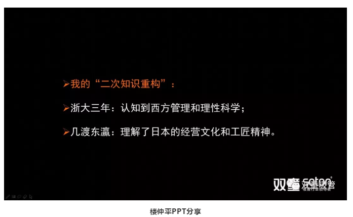 近兩年,樓仲平加入了混沌大學(xué),開(kāi)啟了他人生的“第三次知識重構”,從而認知哲科思維,重新認識自己,重新認識世界!在“第三次知識重構”時(shí),樓仲平的思維得到了極大的轉變,通過(guò)學(xué)習天文學(xué)、生物學(xué)、物理學(xué)等,認知到自然規律和人文科學(xué)的思維方式,從而獲得了用全新視角去認知世界的能力。