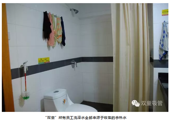 2004年,“雙童”實(shí)施了余熱水采集利用之后,解決了員工洗澡等生活所用熱水的問(wèn)題,徹底消滅了原來(lái)鍋爐燒煤供水的污染。