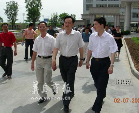 2007年7月2日上午,浙江省常務(wù)副省長(cháng)陳敏爾協(xié)省國土資源廳廳長(cháng)王松林一行10多人,以及金華市委常委、義烏市委書(shū)記吳尉榮和義烏市委副書(shū)記、市長(cháng)何美華等40多位領(lǐng)導,前來(lái)本公司進(jìn)行土地節約集約資源利用實(shí)施情況的實(shí)地考察,公司董事長(cháng)樓仲平對陳省長(cháng)一行匯報了雙童公司近年來(lái)對企業(yè)節約集約用地、循環(huán)經(jīng)濟、生態(tài)工廠(chǎng)等建設情況的報告。