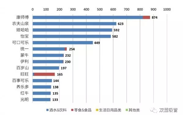 而這些品牌我們就非常熟悉了,康師傅、農夫山泉、娃哈哈、怡寶、可口可樂(lè )等都“榜上有名”!