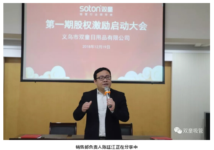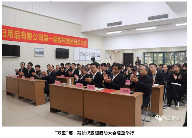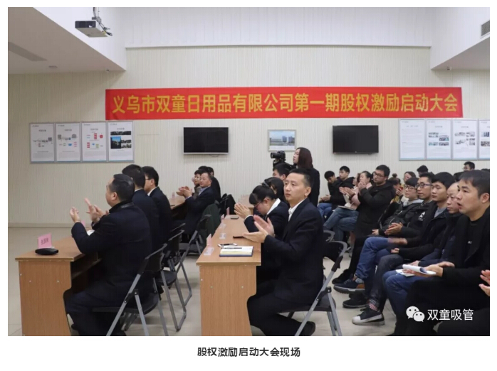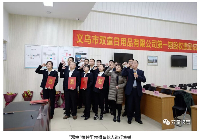2018年12月19日,對“雙童”來(lái)說(shuō),是代表著(zhù)夢(mèng)想、激情、奮斗的一天!在這一天,雙童吸管第一期股權激勵啟動(dòng)大會(huì )在“雙童”九樓閣隆重舉行!“雙童”首批12位核心員工將成為“雙童”的經(jīng)營(yíng)伙伴,一起互相陪伴,走向未來(lái)!