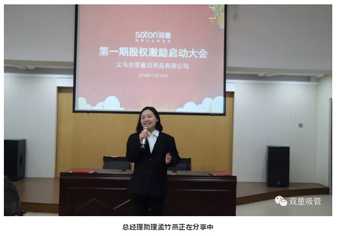 12月19日,雙童吸管第一期股權激勵啟動(dòng)大會(huì )隆重舉行,“雙童”12位新晉股東脫穎而出!他們大多都是從基層做起,完成了從打工仔到新晉股東的勵志蛻變!