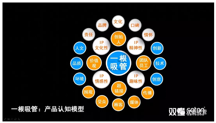 在這個(gè)模型中,產(chǎn)品本身(一根吸管)只是組成“商品”的基礎核心,在產(chǎn)品本身內核不發(fā)生改變的情況下,產(chǎn)品之外的文化性、精神性、趣味性、情感性等屬性不斷地外延,通過(guò)“創(chuàng )始人”、“團隊員工”、“價(jià)值觀(guān)”、“超鏈接”等又形成了產(chǎn)品的種種不同屬性。