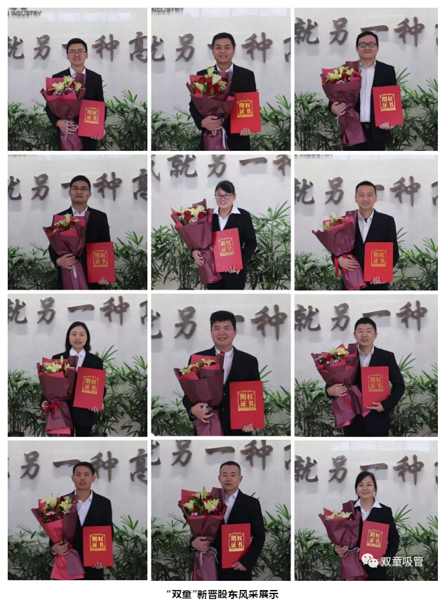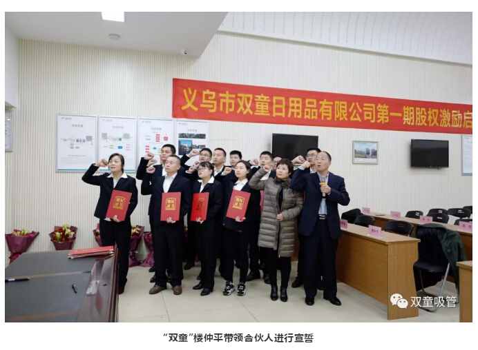 經(jīng)過(guò)八年的探索,經(jīng)過(guò)泰山管理學(xué)院對“雙童”股權激勵工作的支持和指導,2018年12月19日,雙童吸管第一期股權激勵啟動(dòng)大會(huì )隆重舉行!“雙童”首批12位核心員工真正成為企業(yè)合伙人!