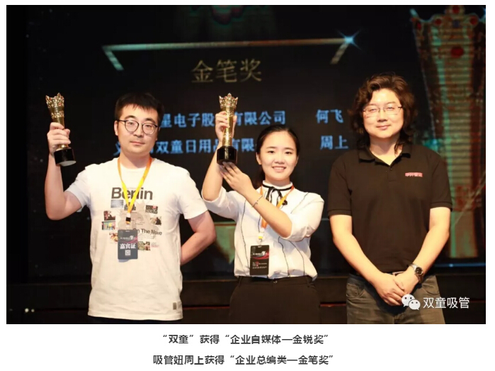 在大會(huì )現場(chǎng),舉行了“第二屆中國優(yōu)秀企業(yè)自媒體”評選頒獎活動(dòng),雙童”榮獲了“企業(yè)新媒體—金銳獎”,吸管妞也獲得了壓軸獎項“企業(yè)總編類(lèi)—金筆獎”!“這也證明了“雙童”的自媒體工作獲得了大眾及業(yè)界的認可!