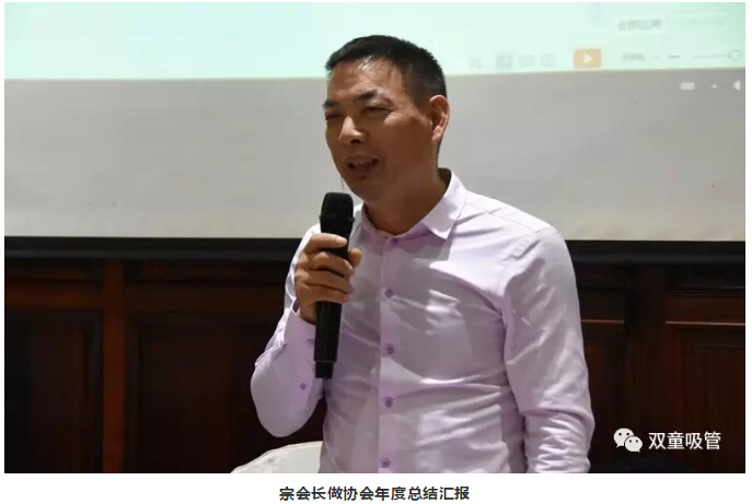 在“雙童”樓仲平向在座的理事們介紹了本次年會(huì )的主要議程后,會(huì )長(cháng)宗產(chǎn)貴先生首先作了協(xié)會(huì )的年度匯報,向在座會(huì )員們匯報了協(xié)會(huì )一年來(lái)舉辦的各項活動(dòng)、獲得的榮譽(yù)及成果,并對2019年度協(xié)會(huì )工作提出了新的期望!