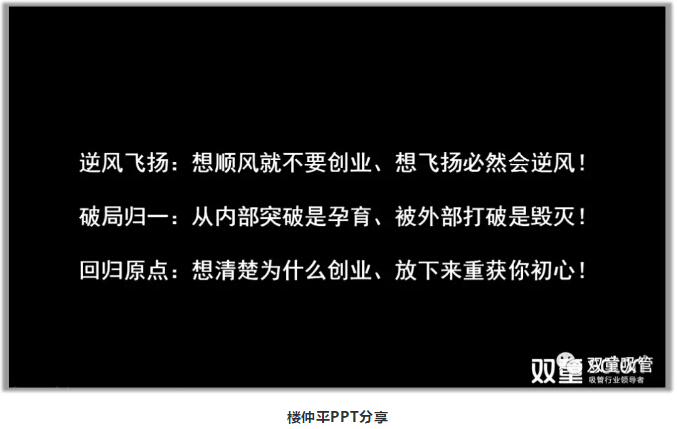 在年會(huì )中有一項議程,就是由“雙童”樓仲平為大家帶來(lái)《巨變時(shí)代下企業(yè)生存的“慎”與“流”》課程分享!